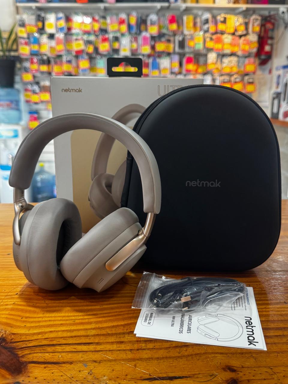 Auricular Negro Bluetooth Vincha con Estuche Beige