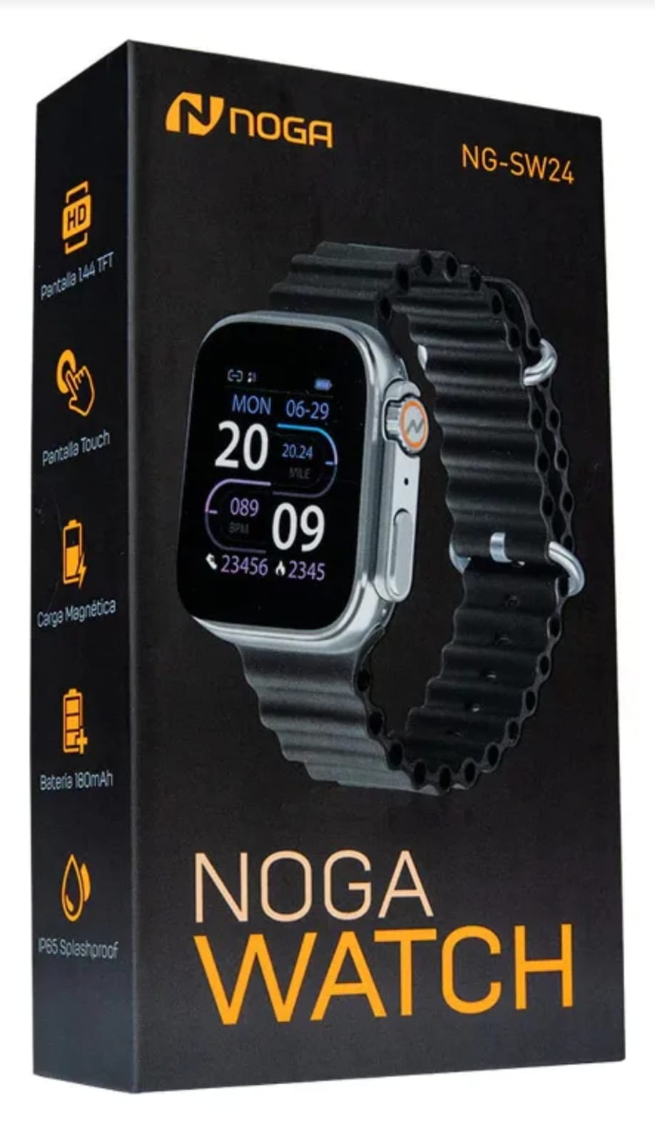Características principales: Procesador y memoria: CPU YC1139, 128KB de RAM y 32MB de almacenamiento para un rendimiento fluido. Pantalla táctil de 1.44" TFT: Configurable con diferentes estilos de pantalla, desde reloj clásico de agujas hasta digital, para que personalices tu experiencia. Conectividad avanzada: Bluetooth 5.0 compatible con Android 5.0 e iOS 9.0 o superior, que asegura una sincronización rápida y estable. Aplicación Fitpro: Controlá todas las funciones descargando esta app desde Google Play. Funciones de salud y deporte: Modo multideporte, monitoreo de sueño y control saludable para que lleves un registro completo de tu bienestar. Resistente y duradero: Certificación waterproof IP65 contra polvo y líquidos, ideal para el uso diario. Cámara remota: Tomá fotos con solo un movimiento de muñeca, perfecto para selfies y momentos espontáneos. Batería y carga: Batería de polímero de litio de 180mAh con carga magnética rápida en aproximadamente 2 horas. Autonomía de 3 a 5 días de uso y hasta 12 días en reposo. Materiales premium: Aleación de zinc y silicona que brindan resistencia y confort. Con el NG-SW24, no solo tendrás un reloj, sino un asistente personal que te acompaña en tu rutina diaria con estilo y tecnología de punta. ¡No te pierdas la oportunidad de vivir la experiencia NOGA WATCH!